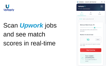 UpApply is een krachtige Chrome-extensie die freelancers helpt bij het vinden van de beste banen op Upwork. Met zijn AI-gestuurde scanfunctie bespaart het uren aan handmatig zoeken. De tool berekent een matchscore vanop basis van het profiel van de freelancer, inclusief vaardigheden en tariefvoorkeuren. Gebruikers kunnen eenvoudig door Upwork-jobaanbiedingen bladeren en de resultaten filteren op basis van hun matchscore.
